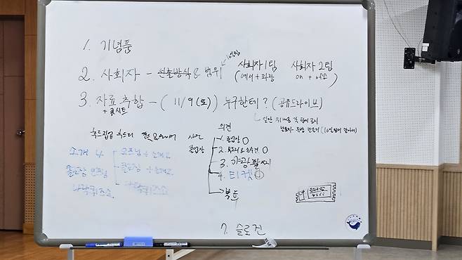 | ▲ 청소년자치회에서 '은하수 한해살이 성장나눔회' 회의 중 칠판 |