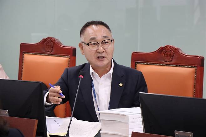 | ▲ 김영민 도의원 김영민 도의원은 지하침반 사고와 관련 “선진국들은 지반침하를 자연재해로 인식, 사전예방과 정보공개 토대로 대응체계 운영”한다고 지적했다. |