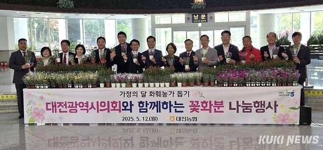 농협 대전본부는 12일 오전 대전시의회 1층 로비에서 대전시의원들과 함께 지역 화훼농가를 돕고 꽃소비 문화를 확산하기 위해 '가정의 달 화훼농가 돕기 꽃화분 나눔행사'를 열었다.