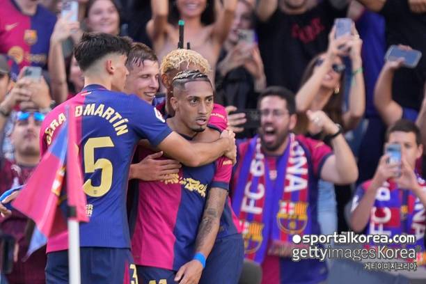 하지만 바르셀로나는 곧장 반격에 나섰다. 전반 19분 에릭 가르시아가 세트피스 상황에서 헤더로 골망을 흔들며 추격의 신호탄을 쏘아 올렸다. 그리고 32분, 하피냐가 동점골을 터뜨리며 경기를 원점으로 되돌렸다.