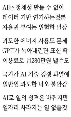 AI 시대에 인간은 어떻게 살아야 할 것인지에 대한 질문에 그는 "인간성과 기술의 균형을 유지하는 것이 중요하다"며 "기술이 빠르게 발전하는 것을 보고 너무 현혹되지 말고 필요한 만큼 주체적으로 활용하겠다는 의지가 필요하다"고 조언했다.
