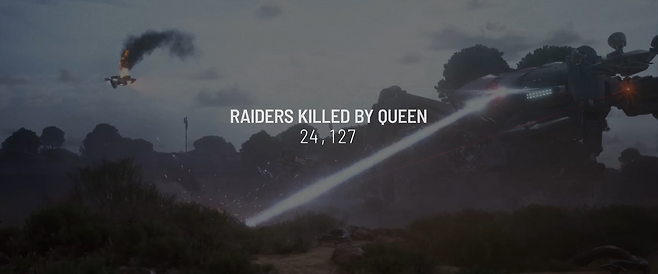 특히, 이를 보호하는 퀸은 전장을 압도하는 초대형 아크다. 건물 크기의 육중한 몸체에 6개의 다리로 돌진하며 범위 내 모든 것을 태우는 레이저, 전방위 미사일 폭격, 그리고 근접한 적을 찍어 누르는 공격 등 치명적인 패턴을 갖췄다.