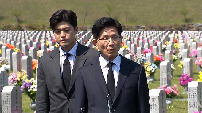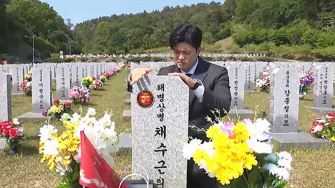 국민의힘 김용태 공동선거대책위원장이 2년 전 군의 실종자 수색 작업 중 순직한 해병대 채 상병 묘역을 홀로 참배한 뒤 "국민의힘이 채 상병 수사 외압을 밝힐 수 있도록 노력하겠다"면서 사과했습니다.