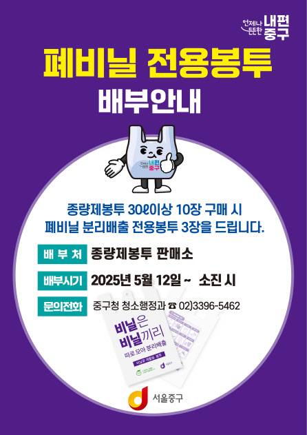 중구, 종량제봉투 구매시 ‘폐비닐 전용봉투’ 무료 제공[동네방네]