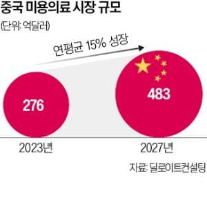 중국 미용의료 시장은 2023년 276억달러에서 연평균 15% 성장해 2027년 483억달러(약 70조원)가 될 것으로 전망된다. 에스테틱 소비자층은 약 2400만 명에 달하는 등 세계 최대 시장으로 꼽힌다.