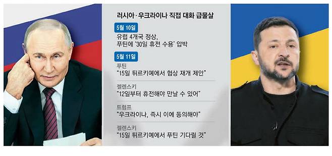 지난주 말 도널드 트럼프 미국 대통령의 중재 속에 블라디미르 푸틴 러시아 대통령과 볼로디미르 젤렌스키 우크라이나 대통령이 제3지대인 튀르키예에서 양국 간 협상을 진행하겠다고 합의하면서 실제 협상 테이블에 두 정상이 직접 나설지 관심을 모으고 있다. 그 자리에서는 구체적인 휴전 조건을 둘러싼 치열한 수싸움도 전개될 예정이다.