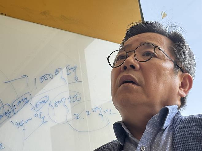 | ▲ 김헌동 전 서울주택도시공사(SH) 사장이 <오마이뉴스>와 만나 주택 부동산 정책에 대해 설명하고 있다. |