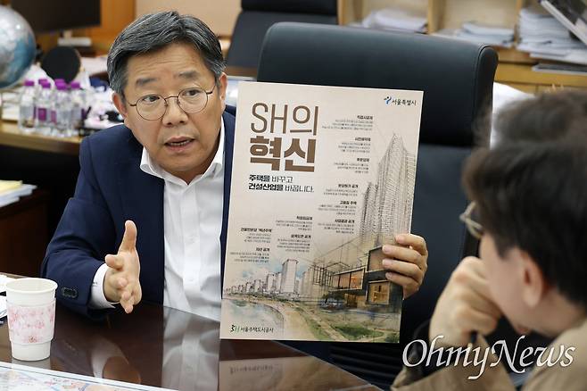 | ▲ 2024년 5월 22일, 김헌동 서울주택도시공사(SH) 사장이 서울 강남구 서울주택도시공사 자신의 집무실에서 <오마이뉴스>와 만나 부동산 시장 전망과 22대 국회에서 다뤄야할 부동산 대책 등에 대해 이야기를 나누고 있다. |