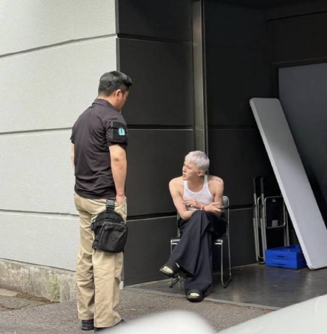 얇은 셔츠를 입은 모습에서도 그의 어깨깡패 아우라는 드러났다.