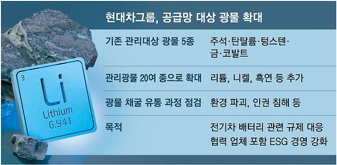 [단독] “선진국에 트집 안 잡힐래”…현대차, 공급망 관리 광물 늘리는 까닭은