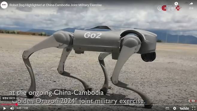 | ▲ 지난 2024년 캄보디아에서 열린 캄보디아-중국 연례 합동군사훈련에 첫 투입된 중국 제작 로봇 개의 운영 모습을 담은 유튜브 동영상. |
