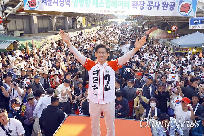 | ▲ 김문수 국민의힘 대선후보가 12일 오후 대구 서문시장을 방문해 시민들에게 인사하고 있다. |