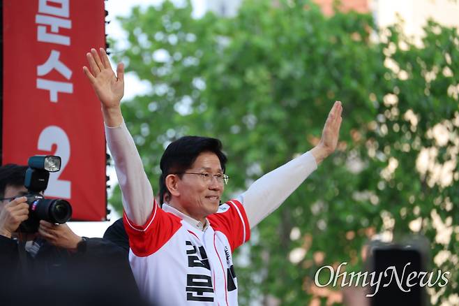 | ▲ 보수의 심장 대구 찾은 김문수 “뭉치자, 싸우자, 이기자” 김문수 국민의힘 대선후보가 12일 오후 대구 중구 서문시장에서 열린 유세에서 시민들에게 지지를 호소했다. ⓒ 유성호 |