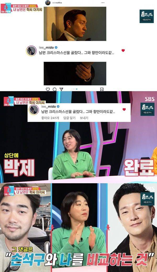 그러면서 "그래서 상단에 박제됐다. 그걸 남편이 보고 확 상처를 받았다. '손석구와 나를 비교하는 것'이라더라"며 "저는 팬심으로 쓴 건데"라고 해명했다.