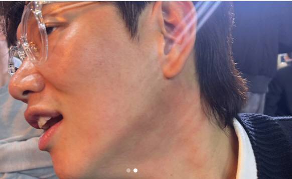 장성규는 손바닥 자국이 확연한 뺨을 공개하며 아찔했던 순간을 남겼다.