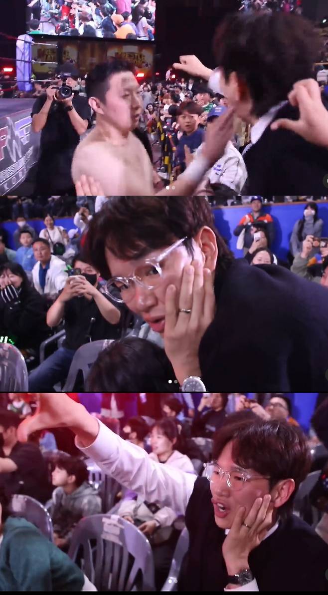 프로레슬러 시호가 등장할때 야유의 손짓을 보내던 장성규는 시호가 때린 벼락같은 따귀에 쓰러졌다.