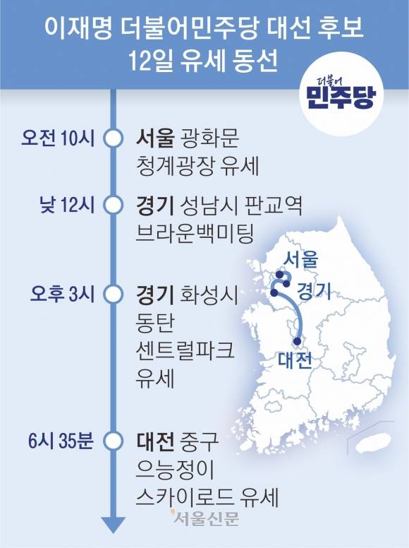 이재명 “일할 기회 달라”… 광화문·판교·동탄·대전서 K성장 외치다