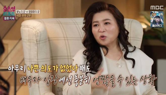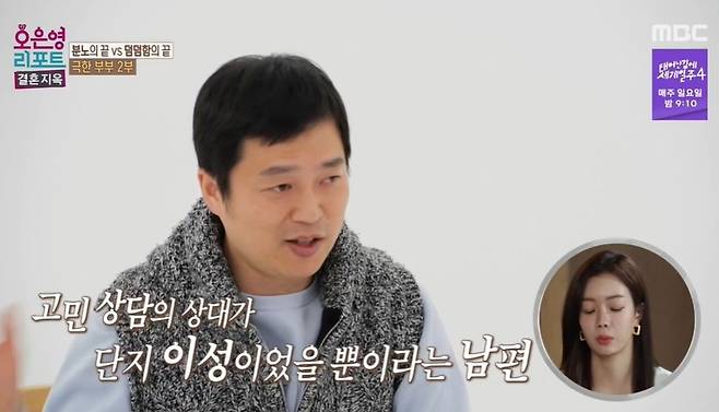 12일 방송된 MBC '오은영 리포트-결혼 지옥'(이하 '결혼지옥')에서는 오은영, 소유진, 김응수, 박지민, 문세윤이 극한 부부의 영상을 보고 안타까워했다.