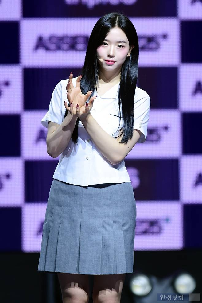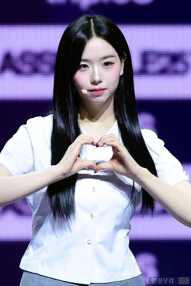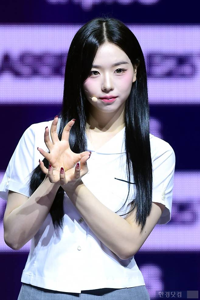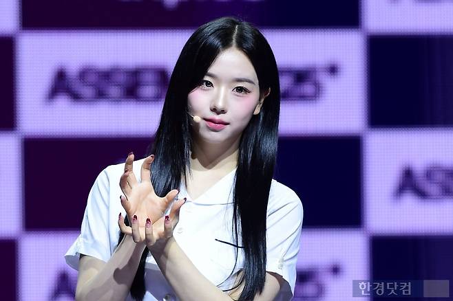 그룹 트리플에스(tripleS) 김채연이 12일 오후 서울 한남동 블루스퀘어에서 열린 완전체 디멘션(DIMENSION) 새 앨범 'ASSEMBLE 25(어셈블25)' 발매 기념 쇼케이스에 참석해 포토타임을 갖고 있다.