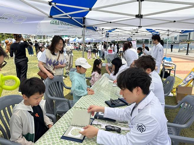 마산대학교 안경광학과(학과장 김정숙)는 가정의 달을 맞아 지난 10일 마산합포구 3·15해양누리공원에서 열린 ‘제49회 한·일 국제 어린이 그림그리기 대회’ 현장에서 참가 어린이들과 학부모를 대상으로 시력 건강 캠페인과 검안 봉사활동을 실시했다.
