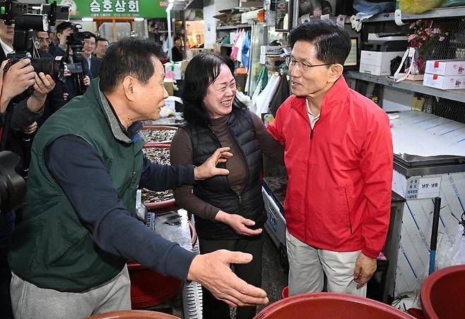 김 후보는 이날 오전 5시 서울 송파구 가락시장에서 첫 유세를 시작하며 “시장을 살리는 시장 대통령이 되겠다”며 민생 행보를 먼저 부각했다. 그는 “우리가 ‘시장경제’라고 말을 하는데 시장경제가 바로 시장”이라며 “밤잠 안 자고 일하는 여러분의 땀과 노고가 반드시 열매를 맺게 낮은 곳에서 뜨겁게 여러분을 섬기는 그런 대통령이 되겠다”고 말했다.