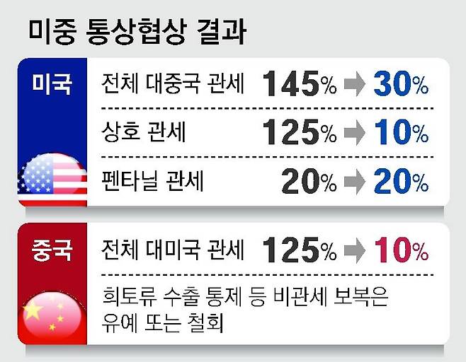 美 대중 관세 145→30%, 中은 125→10%로 인하… 일단 휴전