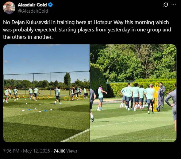 토트넘 내부 사정에 밝은 영국 매체 '풋볼 런던'의 기자 알레스데어 골드는 12일 자신의 SNS를 통해 “오늘 아침 홋스퍼 웨이에서 열린 훈련에 데얀 클루셉스키의 모습은 보이지 않았다”며 “이는 어느 정도 예상된 일이었다. 전날 경기에 선발로 나선 선수들은 한 그룹, 나머지는 또 다른 그룹으로 나뉘어 훈련을 소화했다”고 전했다.