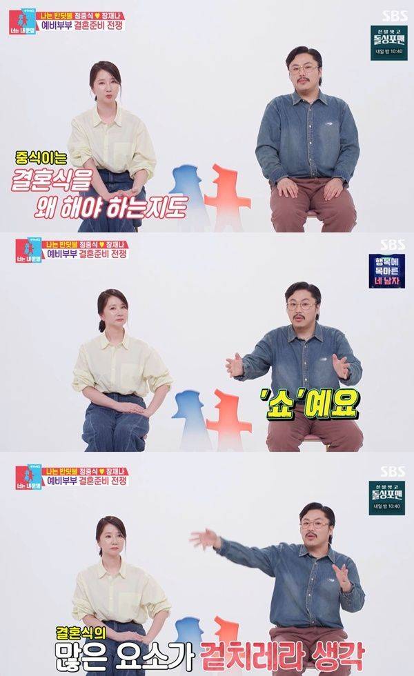이후 장재나는 제작진에게 "(정중식은) 결혼식을 왜 해야하는지도 이해하지 못했다. 그것부터 설득을 했다. 관심 분야가 아닌 것 같다"고 토로했다