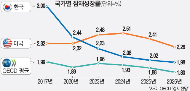 ![한국 잠재 국내총생산 성장률이 1.98%로 예상된다고 OECD는 12일 밝혔다. [사진 = 연합뉴스]](https://img3.daumcdn.net/thumb/R658x0.q70/?fname=https://t1.daumcdn.net/news/202505/13/mk/20250513061803229hzxl.jpg)