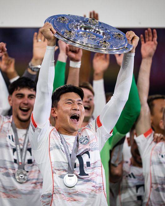 바이에른은 12일(이하 한국시간) 구단 소셜 미디어를 통해 "바이에른 뮌헨 유니폼을 입고 들어올린 첫 트로피!"라며 김민재가 '마이스터 샬레(분데스리가 우승 트로피)'를 들어 올리는 모습과 동료들 사이에서 우승 세리머니를 즐기는 모습이 담긴 사진을 여러 장 게시했다.