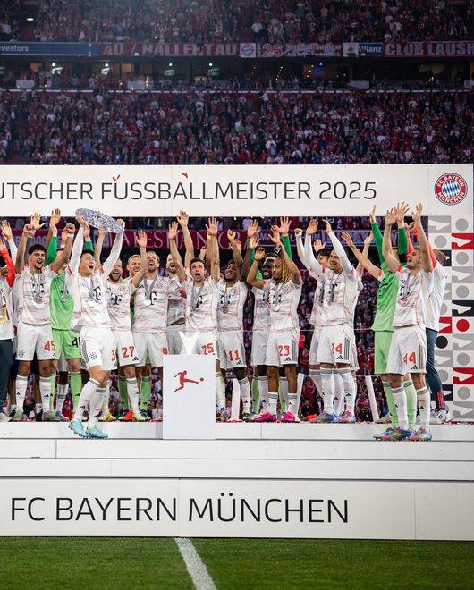 주장 마누엘 노이어가 이번 시즌을 끝으로 팀을 떠나는 '전설' 토마스 뮐러에게 트로피를 건넸다. 뮐러는 뜨거운 기립박수를 받으며 마이스터샬레를 번쩍 치켜들었다. 관중석에선 환호성이 터져나왔다.