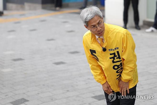 (서울=연합뉴스) 김성민 기자 = 민주노동당 권영국 대선 후보가 13일 오전 서울 성북구 성신여대입구역 인근에서 시민들에게 인사하고 있다. 2025.5.13
