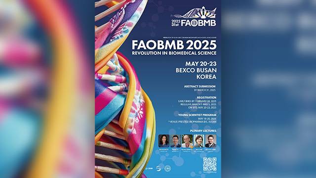 국내외 생명과학 분야 석학들이 한자리에 모이는 ‘제31차 아시아·오세아니아 생화학 분자생물학 국제학술총회 (FAOBMB 2025)’가 오는 20일부터 23일까지 4일간 부산 벡스코(BEXCO)에서 열릴 예정입니다.
