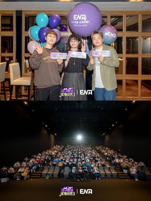 지난 10일 서울 CGV용산아이파크몰에서 진행된 ENA ‘지구마불 세계여행3’(이하 ‘지구마불3’) 단관 이벤트에서 여행 크리에이터 3인방 빠니보틀, 원지, 곽튜브가 팬들과 뜨거운 교감을 나눴다. 본방송 8회를 팬들과 함께 시청했고, “직접 만나 감사 인사를 전할 수 있어 기쁘다”는 진심 어린 소감을 남겼다. ‘찐팬 인증 퀴즈’, ‘무엇이든 물어보세요’, ‘럭키드로우’ 등 다양한 이벤트 프로그램은 현장의 열기를 한층 끌어올렸다.