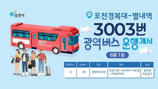 경기 포천시가 광역버스 신규 노선인 3003번(경복대학교–별내역) 노선을 다음 달 1일부터 정식 운행한다고 밝혔습니다.