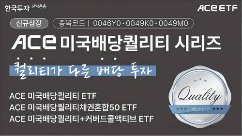 한국투자신탁운용이 배당 성장주에 투자하는 상장지수펀드(ETF) 3종을 상장한다. 이번에 상장하는 3종 상품은 ‘ACE 미국배당퀄리티’ ‘ACE 미국배당퀄리티+커버드콜액티브’ ‘ACE 미국배당퀄리티채권혼합50’ 등이다. 모두 미국 자산운용사 위즈덤트리가 운용 중인 WisdomTree US Quality Dividend Growth ETF(DGRW)를 기반으로 하며, 월 분배를 시행한다.