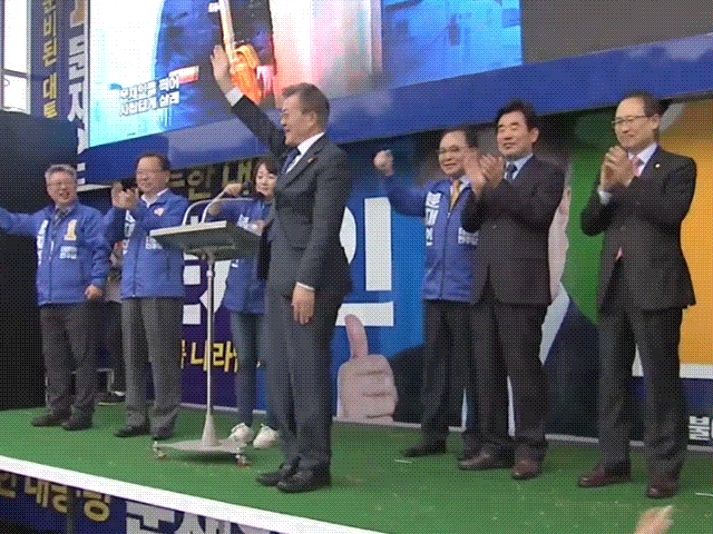 국민 여러분, 반만년의 역사가 전 세계가 설렘과 기대감으로 우리 국민의 위대한 여정을 지켜보고 있습니다. 이제 남은 22일의 시간은 온전히 우리 위대한 국민들의 시간입니다. 늘 그랬듯 무능하고 부패한 기득권이 역사의 수레바퀴 앞에 저항하겠지만 그 누구도 우리 국민들이 만들어갈 그 도도한 역사의 흐름을 막지 못할 것이다, 맞습니까, 여러분!