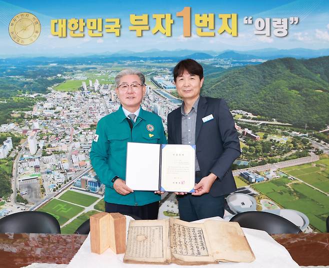 | ▲ 오태완 의령군수, 죽유문집 정고본-문세영 우리말 사전 희귀본 기증 |
