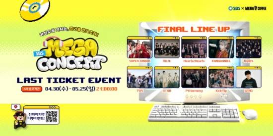 한편, '2025 SBS MEGA 콘서트'는 5월 31일(토) 인천아시아드 주경기장에서 개최된다. 마지막 콘서트 티켓 당첨 기회를 제공할 4차 이벤트는 오는 25일(일) 오후 9시까지 진행되며, 당첨자는 5월 29일(목)에 발표된다. 상세한 내용은 메가MGC커피 공식 APP과 SNS를 통해 확인할 수 있다.