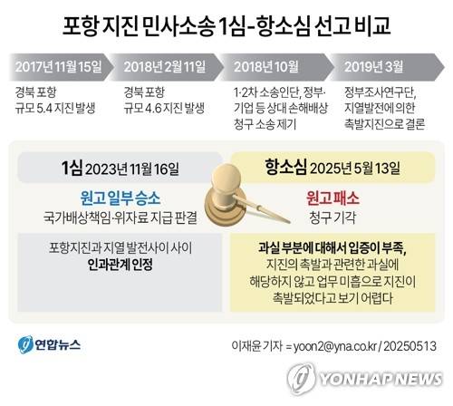 [그래픽] 포항 지진 민사소송 1심-항소심 선고 비교