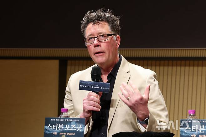 [서울=뉴시스] 박진희 기자 = 예술의전당 신작 오페라 'The Rising World: 물의 정령' 지휘자 스티븐 오즈굿이 13일 서울 서초구 예술의전당 음악당 인춘아트홀에서 기자간담회를 하고 있다. 2025.05.13. pak7130@newsis.com