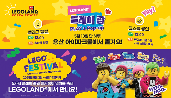 레고랜드는 6월 14일까지 진행하는 '레고 페스티벌'을 기념해 개장 후 최초로 파크 밖 공간에서 플래그 행렬과 코스튬 공연을 열었다.