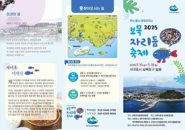 이번 축제는 메인 무대를 중심으로 자리돔 먹거리, 체험 부스, 지역 특산물 판매 등 보목의 바다 향기와 지역 정체성을 느낄 수 있는 공간으로 마련된다.