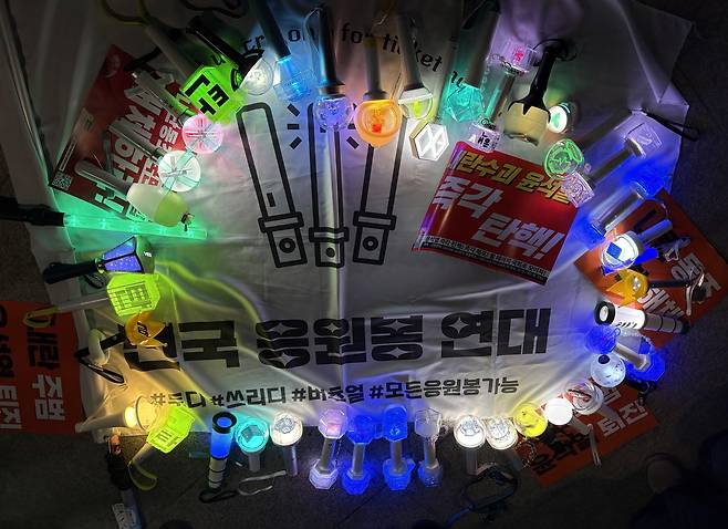 | ▲ '전국 응원봉 연대' 계정주는 "케이팝 팬들에게 응원봉은 가장 소중하고 귀한 물건"이라고 설명했다. 2024년 12월 7일 이들이 각자의 응원봉을 들고 국회 앞에 모였다. |