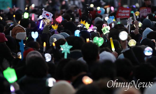 | ▲ 윤석열 탄핵 투표 가결, 꺼지지 않는 응원봉 윤석열즉각퇴진·사회대개혁 비상행동 주최로 2024년 12월 14일 오후 서울 영등포구 국회 앞에서 열린 '내란수괴 윤석열 즉각 탄핵 범국민 촛불 대행진'에서 시민들이 윤석열 대통령의 탄핵소추안 표결에서 탄핵 투표가 가결된 뒤 응원봉을 흔들며 노래를 합창하고 있다. |
