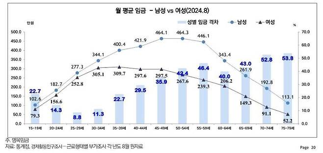| ▲ 2024년 8월 기준, 성별-임금별 임금격차 그래프 |