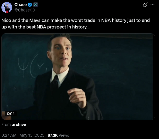 [NBA] 댈러스 '1.8%' 기적에 해리스 단장 화두…"역사상 최악 트레이드로 최고 유망주를 영입하네?"
