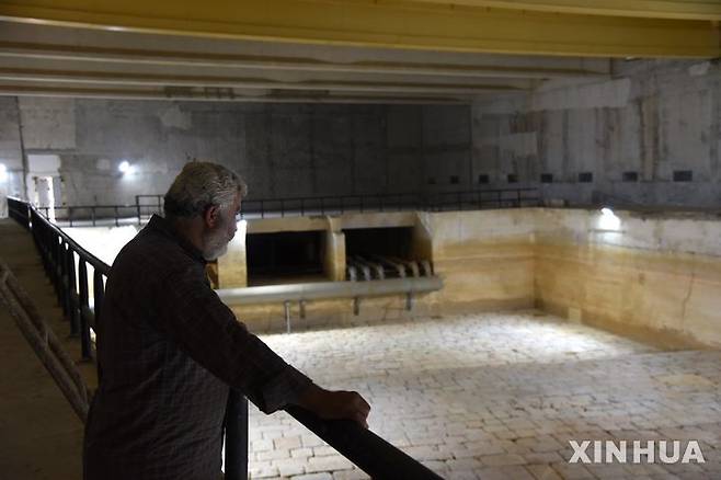 [다마스쿠스=신화/뉴시스] 12일(현지 시간) 시리아 다마스쿠스 아인 알피제 상수원 시설에서 한 작업자가 말라버린 펌프실을 바라보고 있다. 현지 당국은 다마스쿠스 주요 수원지인 아인 알피제의 수량이 1958년 이후 최저 수준으로 떨어지면서 수십 년 만에 최악의 물 부족 사태를 겪고 있다고 밝혔다. 2025.05.13.