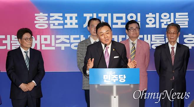 홍 전 시장의 지지자 모임인 '홍준표와 함께 하는 사람들'(홍사모·홍사랑·국민통합찐홍·홍준표캠프 SNS팀)이 13일 "분열을 넘어 통합으로 나아가야 하는 대전환의 길목에서 대한민국을 선진대국으로 이끌 정치인은 이재명 후보"라며 지지를 선언했다.