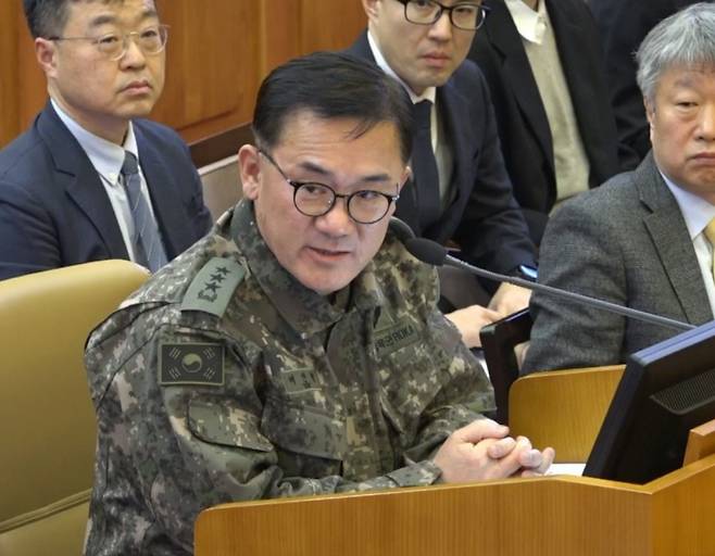 | ▲ 여인형 전 국군방첩사령관이 2월 4일 서울 종로구 헌법재판소에서 열린 윤석열 대통령 탄핵심판 5차 변론기일에 증인으로 출석해 발언하고 있다. |